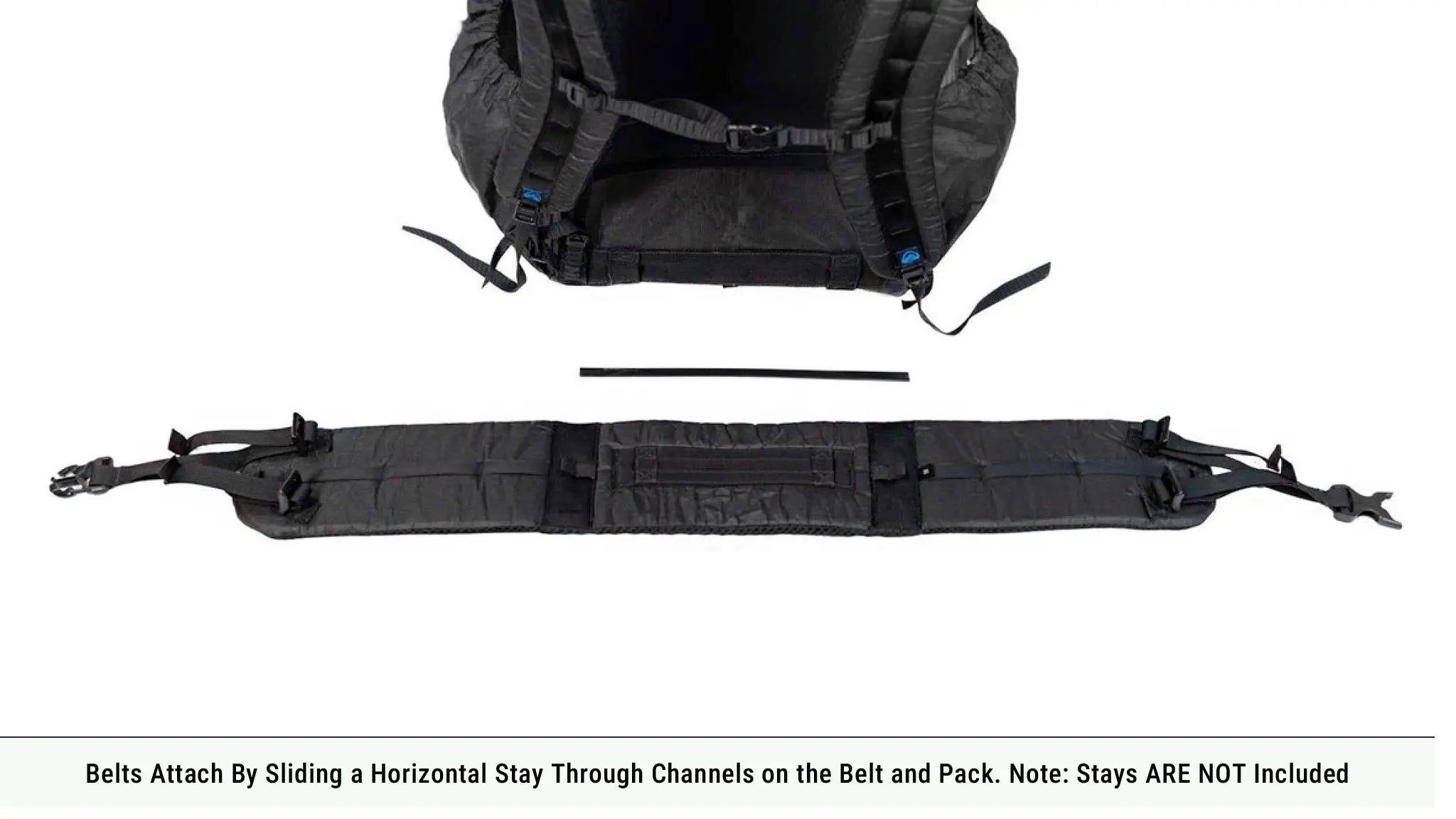 A 10.5" horizontal belt stay is required to attach a belt to one of our framed packs. The stay is NOT included with the belt, but they can be found for purchase here.