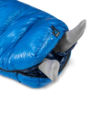 The Mummy features a hood and a full length 2-way side zipper with an integrated draft tube and zipper guard to keep it breeze-free. The zipper wraps all the around the footbox allowing you to open the bag flat like a blanket or to simply unzip the bottom to kick your feet out if you get too hot under all of that premium down.