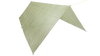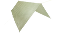 This tarp pitches easiest in a diagonal orientation with two long guy-lines clipped around trees, and two shorter guylines at the opposite corners staked into the ground. It is meant to be pitched over a picnic table, group area, or over a tent.