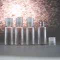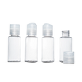These handy squeeze bottles hold 1 fluid ounce (29.5 ml each). They have a press-disc style top which is convenient to flip up and squeeze out small amounts. The top also screws off to fill it or empty it faster. These quality bottles won't leak or accidently come open in your backpack.