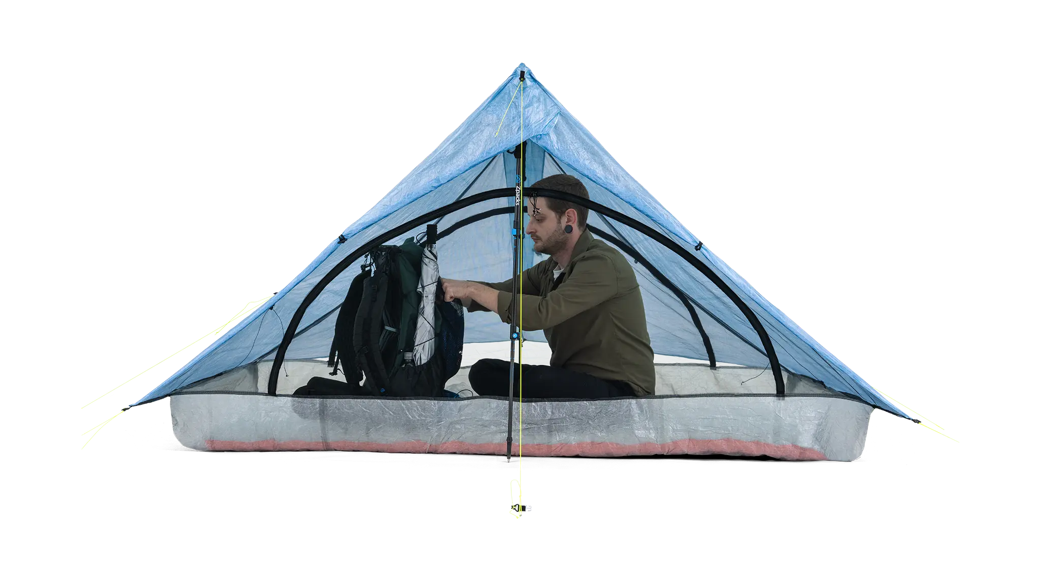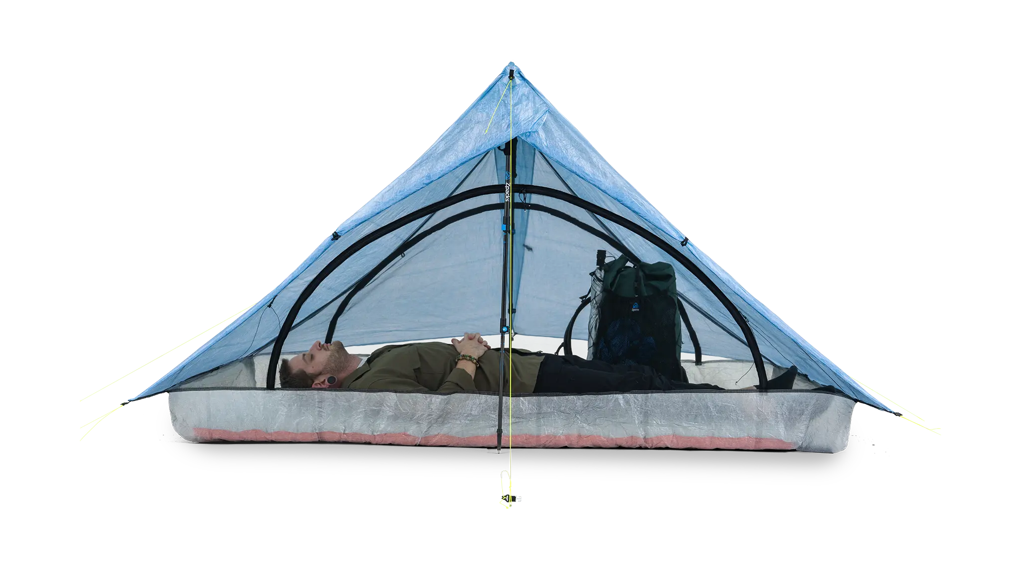 - Taller solo hikers can lay diagonally or add trekking pole cups and 32" poles at the ends of the tent to boost the head room further.