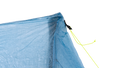 - The canopy overhangs the bathtub floor by 4-5 inches (12 cm). In calm rain or under wet trees one or two doors can be left open for air flow without water dripping on the floor space. In almost all conditions at least one downwind door can be left open for air. For even better rain protection with a door open, use the cords at the ends of the tent to pull the door screen back away from any spray.
