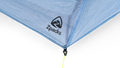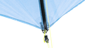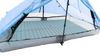 • Wide Double-L screen doors on both sides of the tent drape to block mosquitos or roll up with magnet toggles for easy entry, or access to the vestibule space on either side of the trekking poles. The floor is pinned down by the poles for convenient one-handed zipper operation.