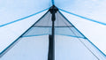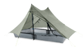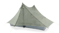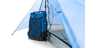 The fully symmetrical design allows you to pitch and sleep in any direction depending on the wind, the slope of the ground, and the views. Stay protected, or vented in any weather with  zippered storm doors which can be deployed for vestibule space, or secured with magnet toggles for views and airflow. The screen doors feature double-L zippers that drape to block mosquitoes or open fully to access your vestibules or enter on either side of the trekking poles.