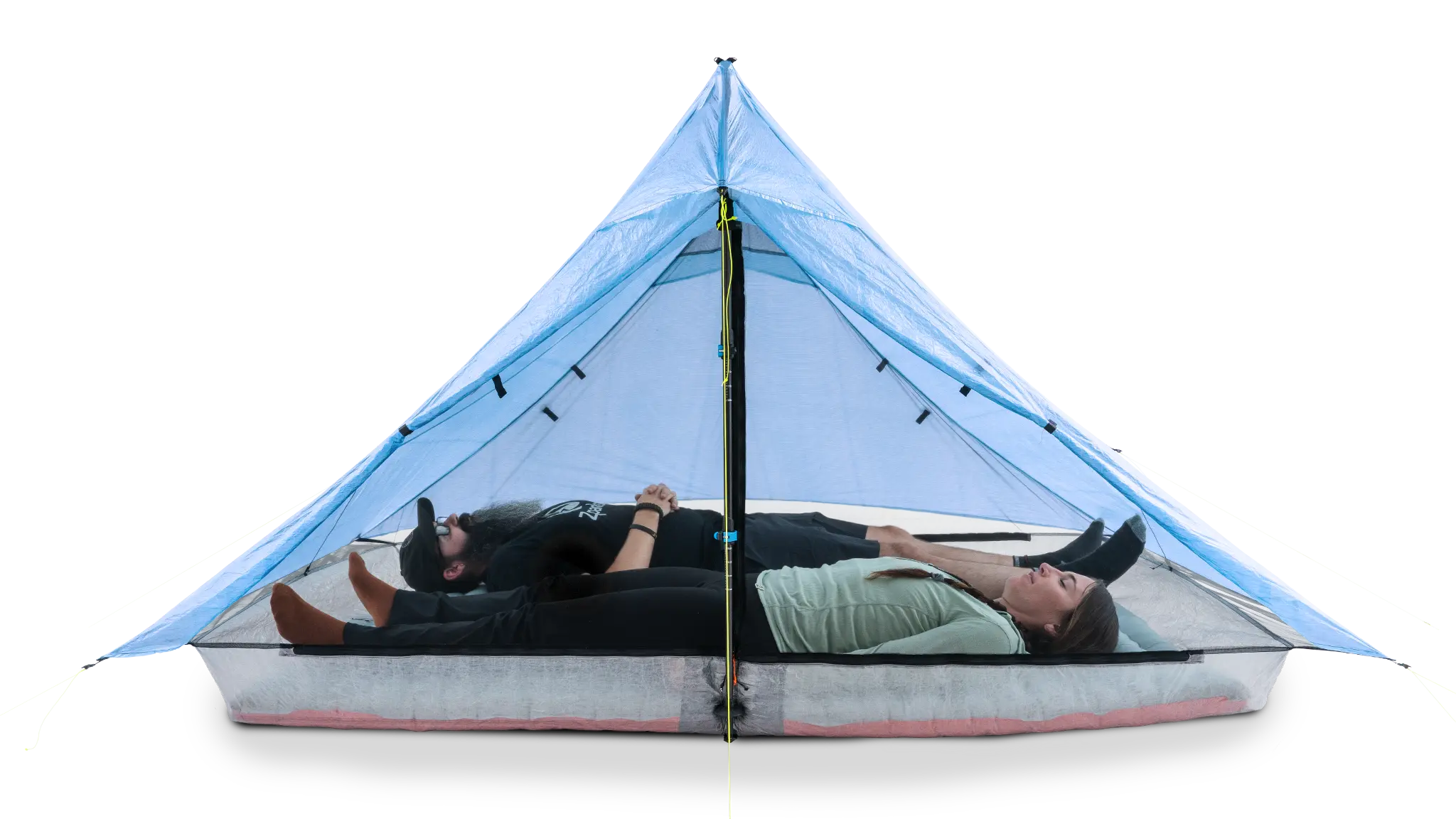 • Taller solo hikers can lay diagonally or add trekking pole cups and 32" poles at the ends of the tent to boost the head room further. Our taller Pivot Duo tent is also a good choice for extra headroom.