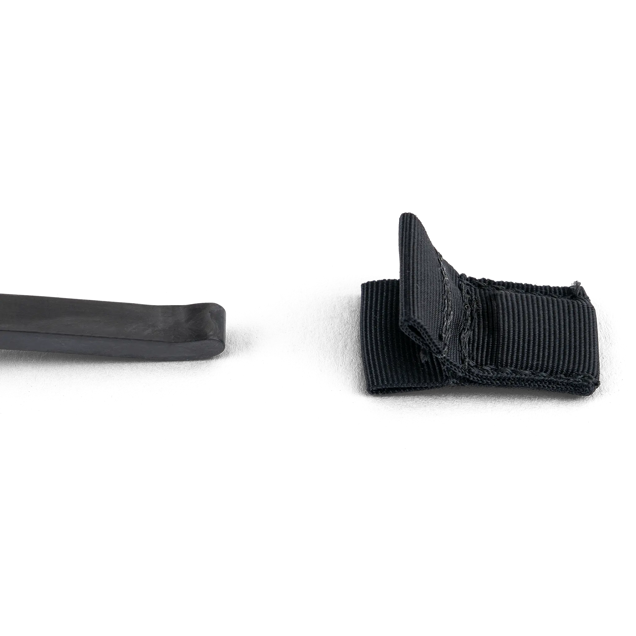 Our vertical carbon fiber Arc Frame connects to the backpack by sliding into webbing pockets at the top and bottom of the backpack.