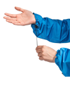 Adjustable elastic at the wrists and hood can be cinched tight or let loose with one hand.